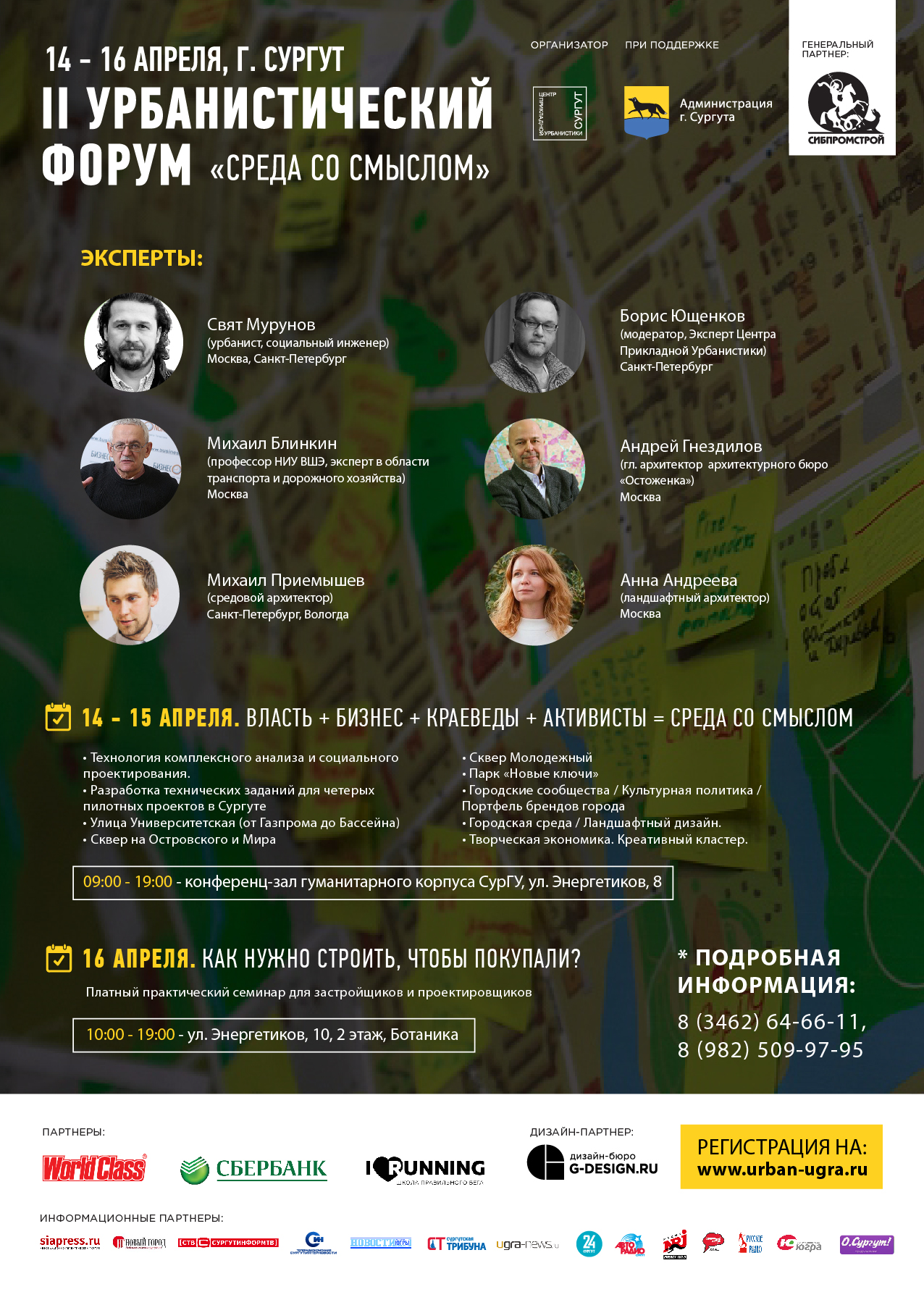 С 14 по 16 апреля 2017 года в городе Сургуте пройдет II Урбанистический Форум «Среда со смыслом»