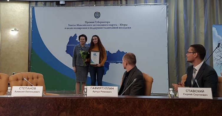 28 сентября 2018 года состоялась торжественная церемония награждения лауреатов премии Губернатора Ханты-Мансийского автономного округа – Югры Н.В. Комаровой в целях поощрения и поддержки талантливой молодежи.