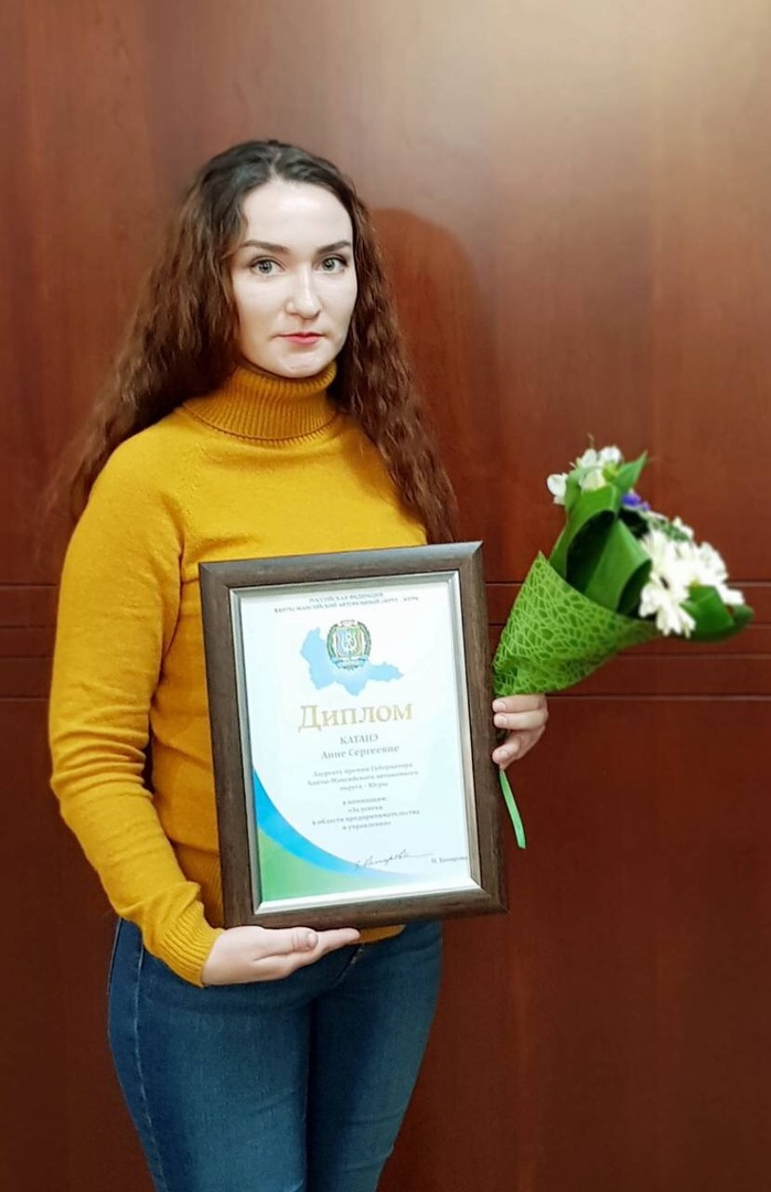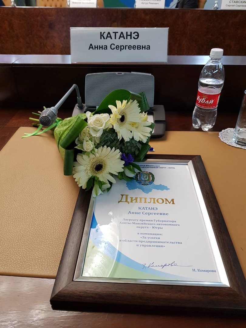 Премией Губернатора в номинации «За успехи в области предпринимательства и управления» награжден индивидуальный предприниматель из Сургута - Катанэ Анна Сергеевна (творческая мастерская «Ананас»).