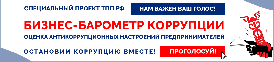 С 16 октября по 22 ноября 2019 года стартовал VII этап специального проекта «Бизнес – барометр коррупции». Приглашаем принять участие в анонимном анкетировании пройдя по ссылке.