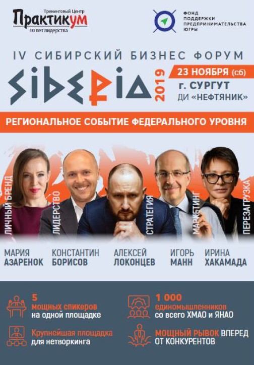 23 ноября 2019 года состоится IV Сибирский бизнес форум «SIBERIA 2019»*