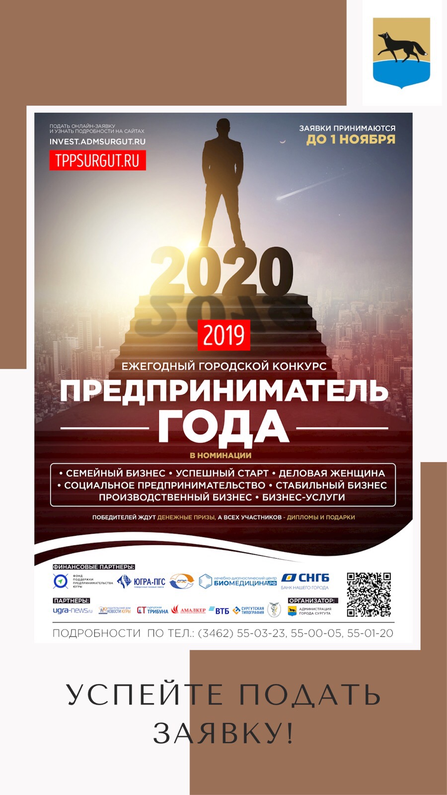 По вопросам участия и заполнения заявок можно обращаться: Сургутская ТПП – (3462) 55-03-23, Администрация города - (3462) 550-005, 522-120.