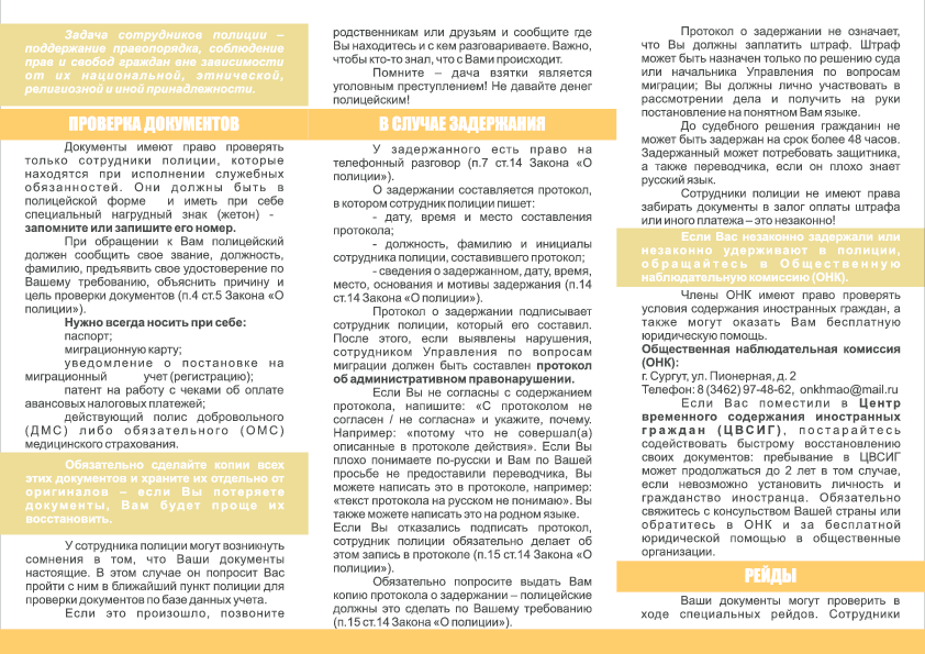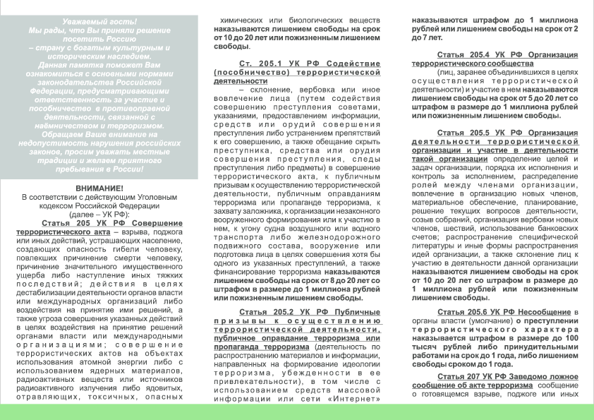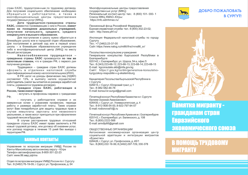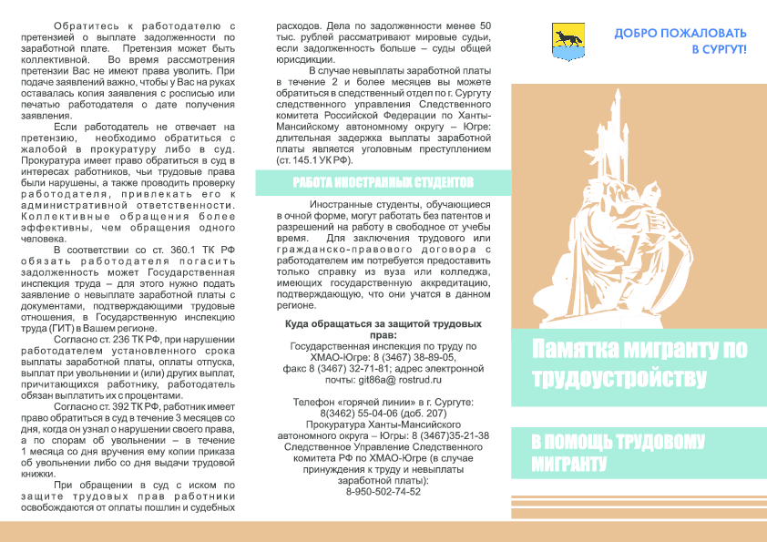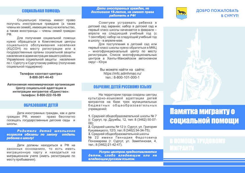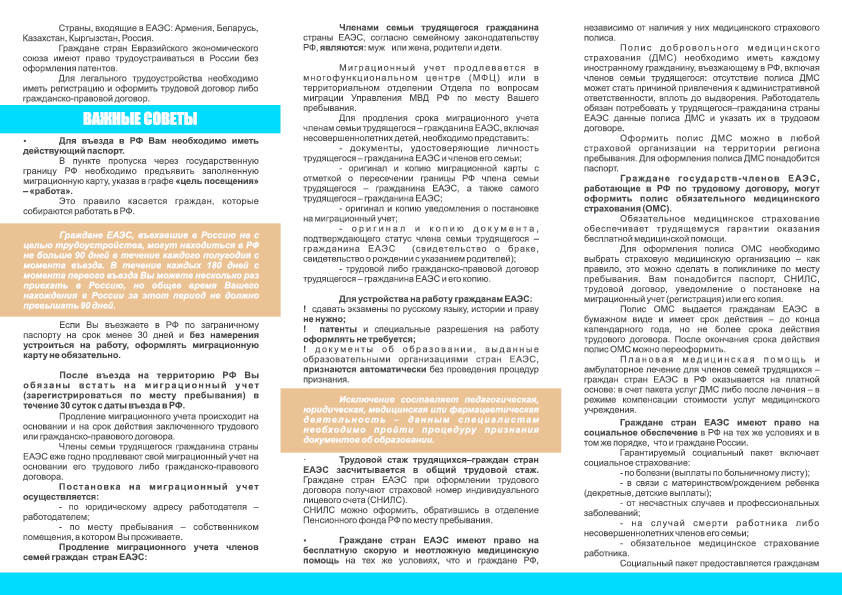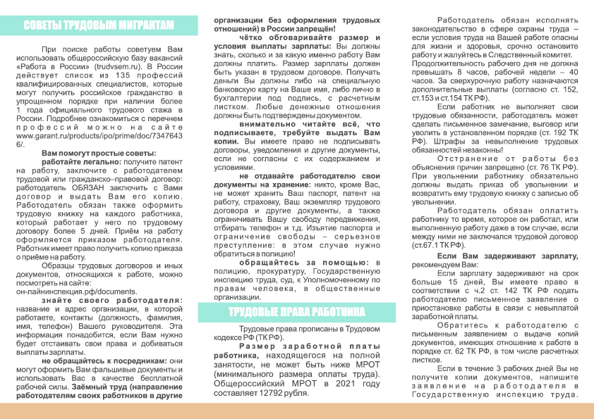 Иформационные материалы, касающиеся правового положения иностранных граждан, трудоустройства, пребывания и проживания