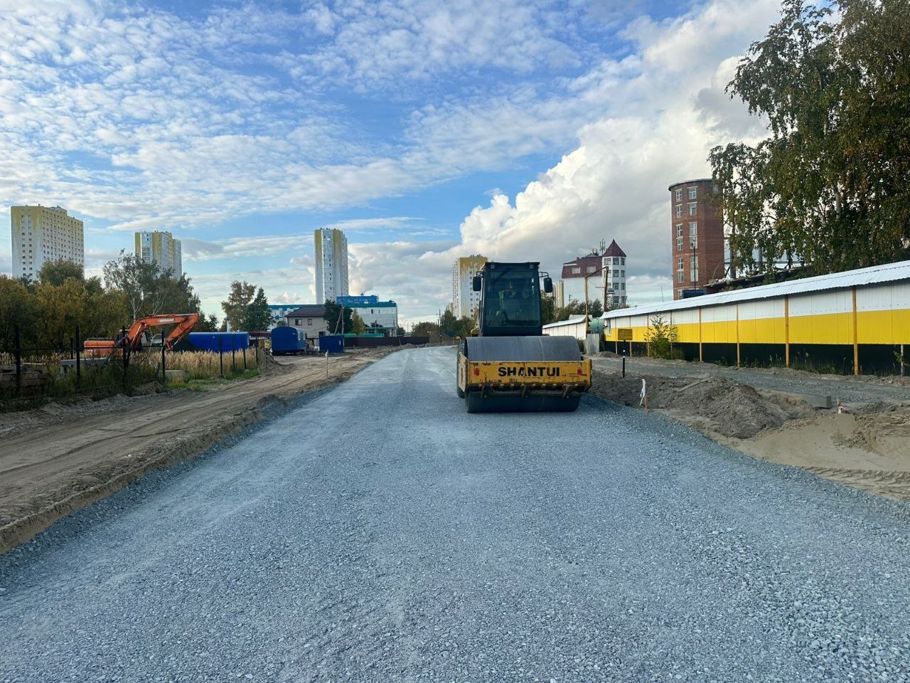 Автомобильная дорога протяженностью 765,9 м планируется к сдаче в конце текущего года. Здесь предусмотрены две полосы движения, пешеходная часть шириной в 2м, тротуары площадью 164 м2. Сети электроснабжения - длиной 72м, обустроят наружное освещение на 755 м. Также вдоль дороги планируется озеленение, площадь которого составит 9097м2. Стоимость объекта составляет около 90 миллионов рублей. На сегодняшний день готовность составляет 30%. Ведутся работы по устройству тротуаров, земляного полотна, газонов. Также переустраиваются сети теплоснабжения, электроснабжения и освещения. На текущий период на объекте работает 10 человек и 4 единицы строительной техники.