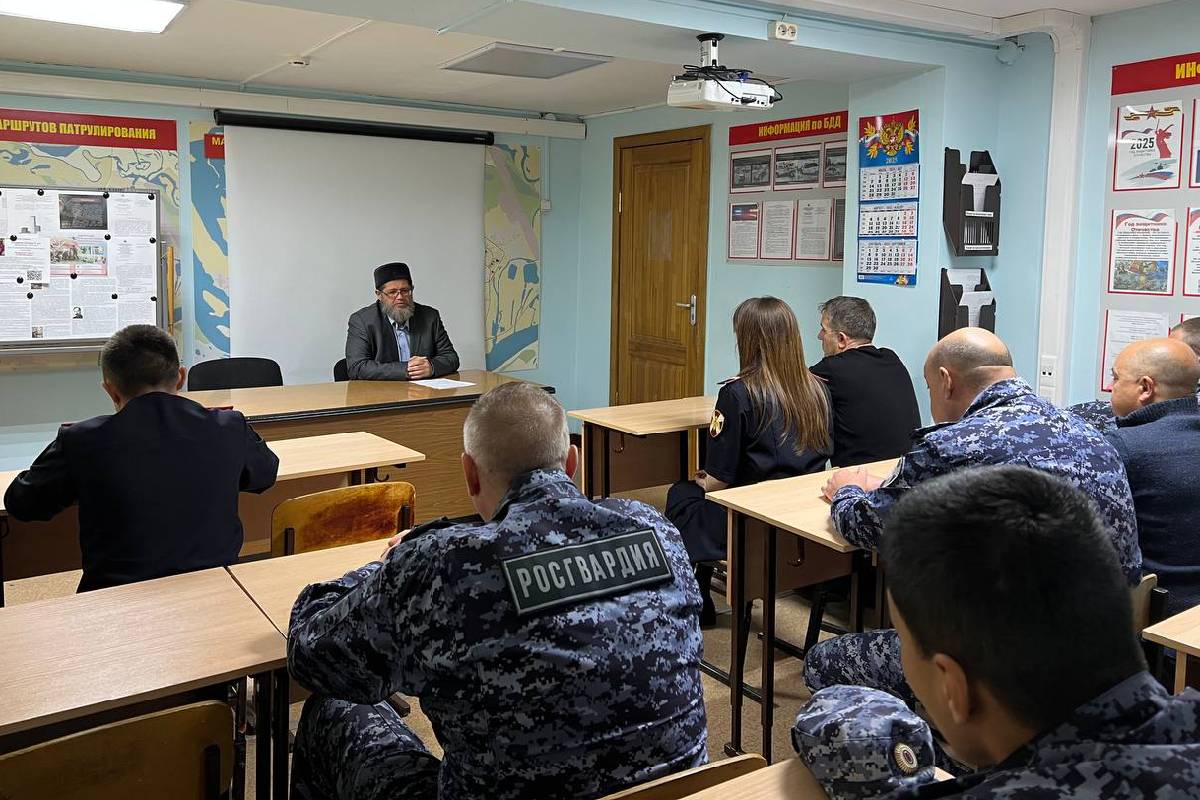 В Нефтеюганском межмуниципальном отделе вневедомственной охраны Росгвардии в ходе беседы с главой городской мусульманской общины Усманом хазратом Печориным было обсуждено сотрудничество, в том числе в вопросах предотвращения религиозного экстремизма.
