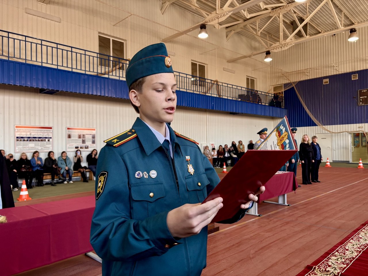 Более опытным кадетам в лице одиннадцатиклассников были присвоены учебные звания и вручены ценные подарки за образцовое исполнение служебных обязанностей, достижение высоких результатов в спорте, а также за активное участие в общественной жизни пожарно-спасательного класса.