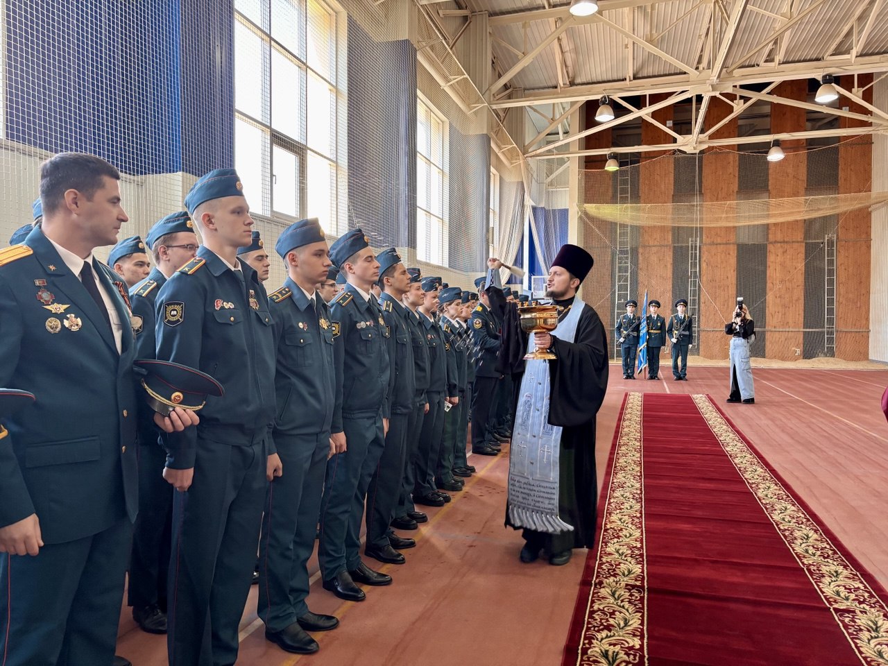 После вручения удостоверений и отличительных знаков новоиспеченным курсантам, представитель Ханты-Мансийской епархии Русской православной церкви отец Дионисий провёл церковный обряд освещения и благословения.