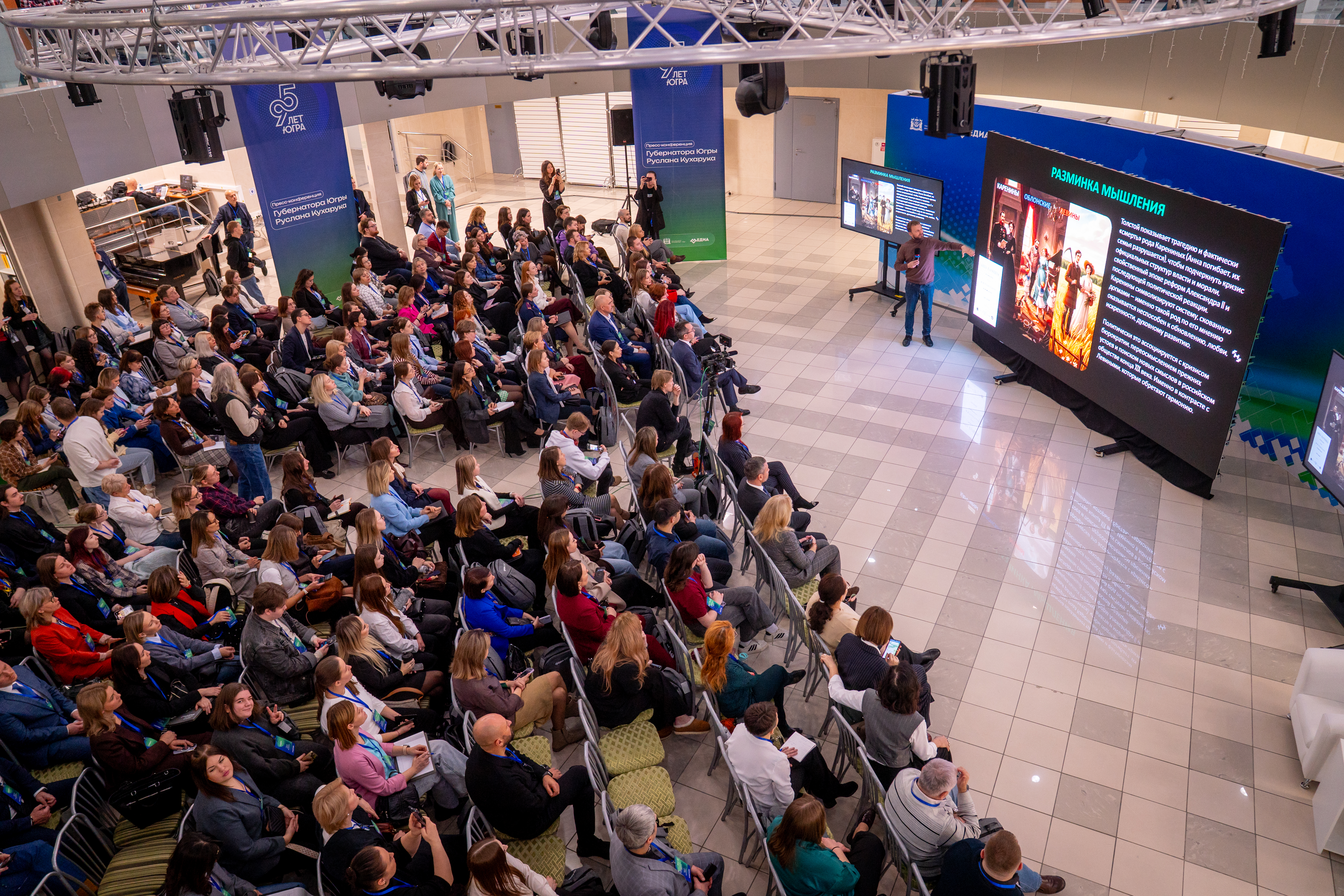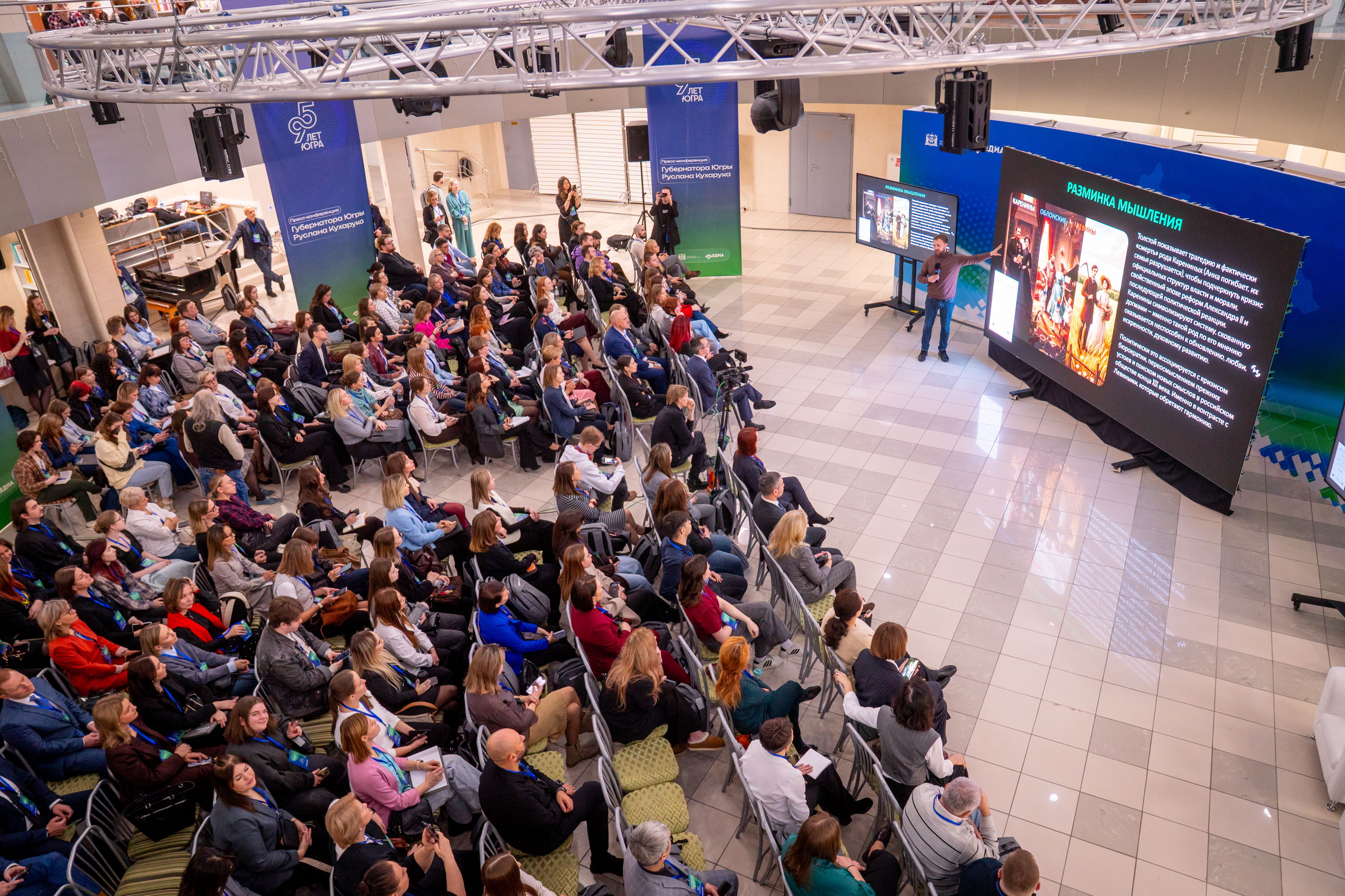 Насыщенная программа форума подготовлена департаментом внутренней политики Ханты-Мансийского автономного округа. В рамках мероприятия прошли мастер-классы, дискуссионные площадки и практические сессии. Главная цель – задать направления развития медиасреды Югры.