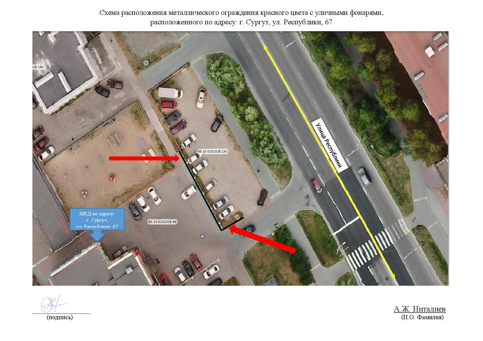 Информация для собственника самовольно (незаконно) размещенного металлического ограждения красного цвета с уличными фонарями по адресу: Ханты-Мансийский автономный округ - Югра, г. Сургут, ул. Республики, 67