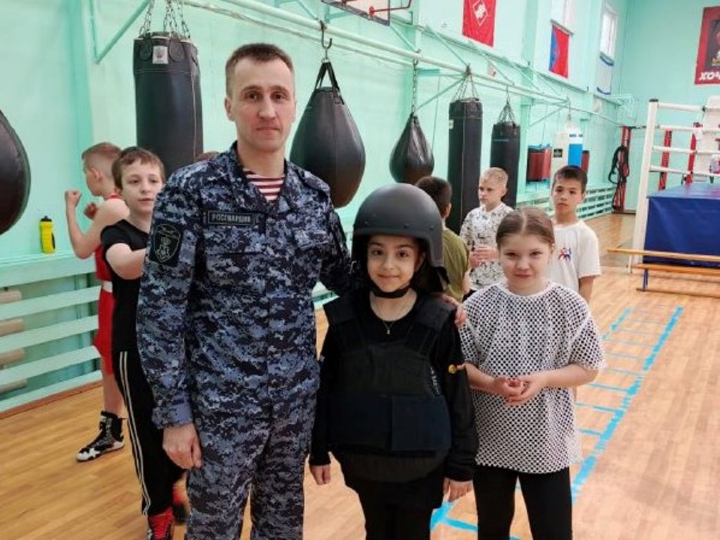 В спортивной школе города старший лейтенант полиции Виктор Безотеческий провел военно-патриотический урок с воспитанниками 1-5 классов. Представитель Росгвардии рассказал о вехах становления городского отдела вневедомственной охраны, первом начальнике отдела - майоре милиции Евгении Лапшине, далее школьники получили возможность узнать об условиях и порядке приема в военные образовательные организации высшего образования войск национальной гвардии Российской Федерации.