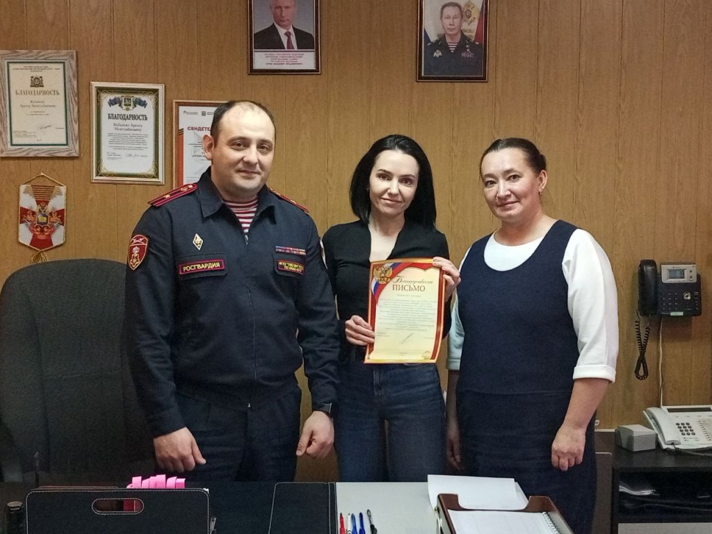 Начальник городского отдела вневедомственной охраны майор полиции Арсен Кубанов встретился с представителями телерадиокомпании "Пыть-Яхинформ" – корреспондентом Лилией Матиенко и оператором Георгием Карасавиди. Для телезрителей телеканала были озвучены результаты служебной деятельности подразделения, а также основные задачи и виды оказания услуг по обеспечению сохранности имущества. Кроме этого, Арсен Кубанов отметил, что в отделе ждут молодых специалистов, и озвучил требования приема на службу. Руководитель ведомства поблагодарил журналистов за информирование жителей города о профилактических мероприятиях, направленных на сохранение безопасности пыть-яхцев, в связи с чем коллективу телеградиокомпании было вручено благодарственное письмо.