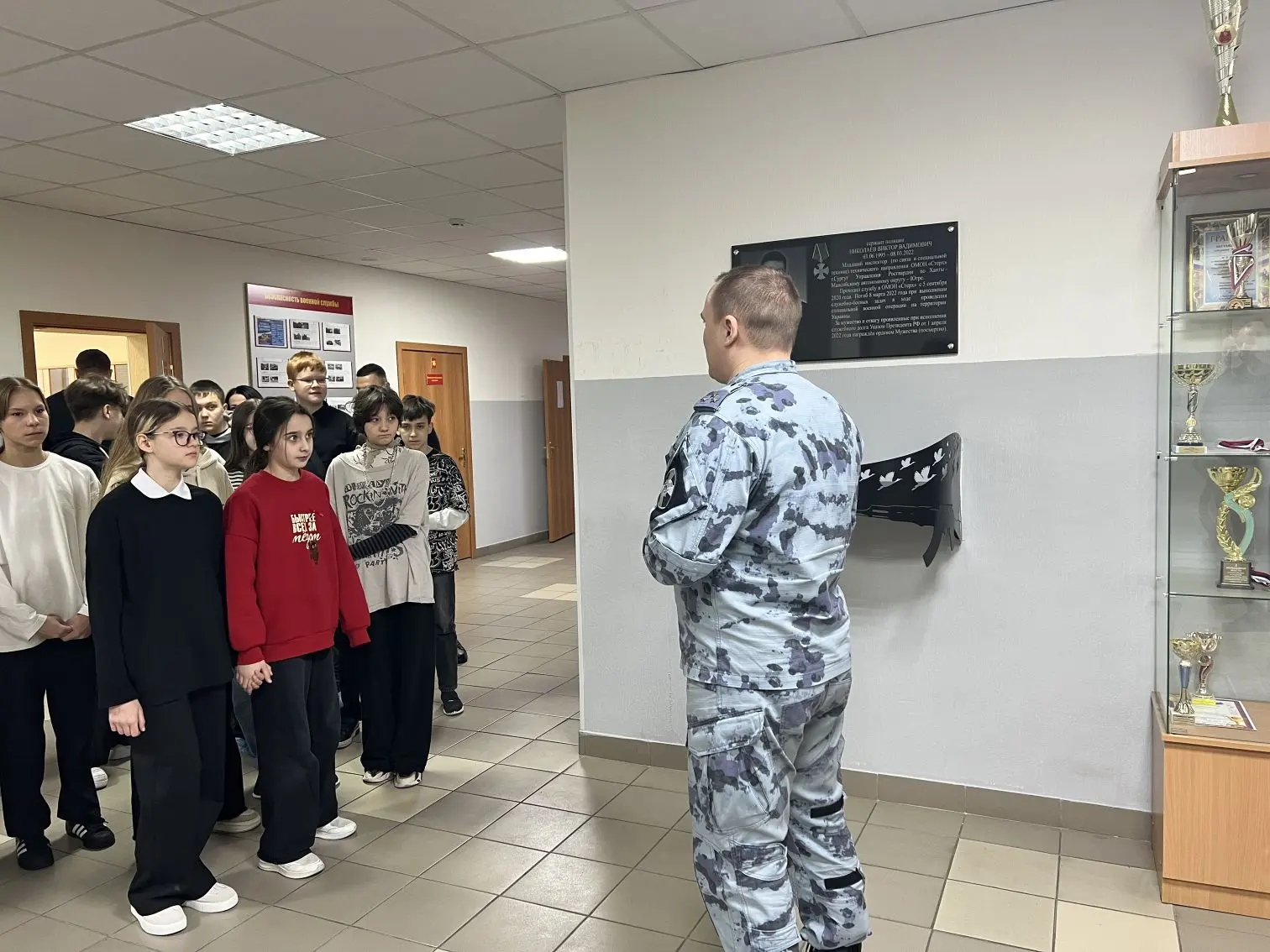 В Сургуте в преддверии 10-летия федеральной службы войск национальной гвардии Российской Федерации и 215-летия войск правопорядка на базе ОМОН «Стерх» Управления Росгвардии по ХМАО – Югре состоялся день открытых дверей для воспитанников гимназии N 2, посвященный памяти   кавалера ордена Мужества сержанта полиции Виктора Николаева, погибшего при исполнении служебного долга в ходе специальной военной операции.