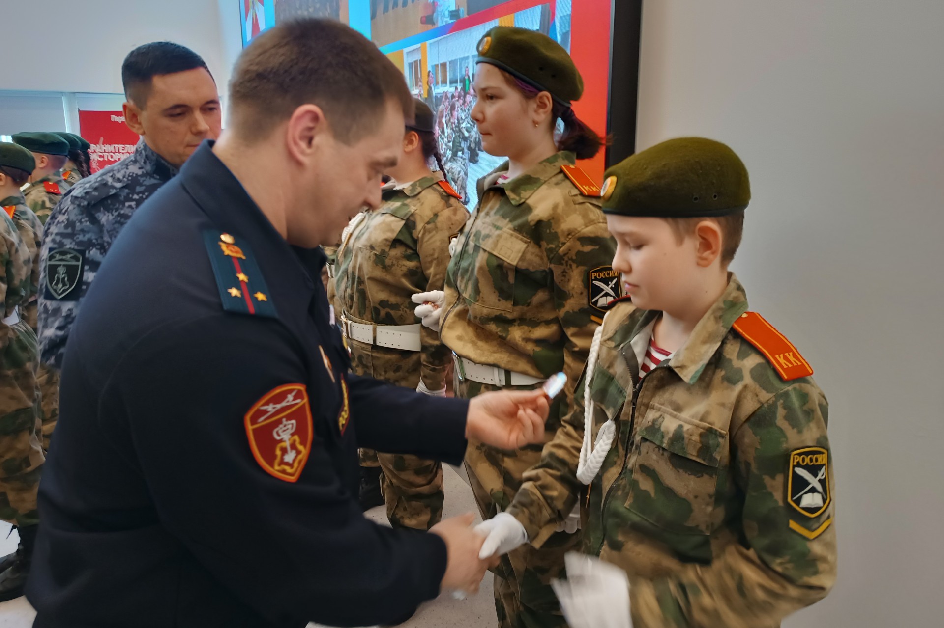 Из рук наставников учащиеся получили первые нагрудные знаки — символ чести, дисциплины и служения Родине.