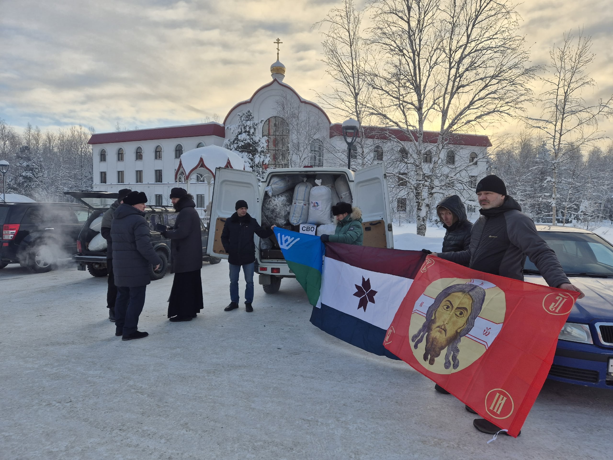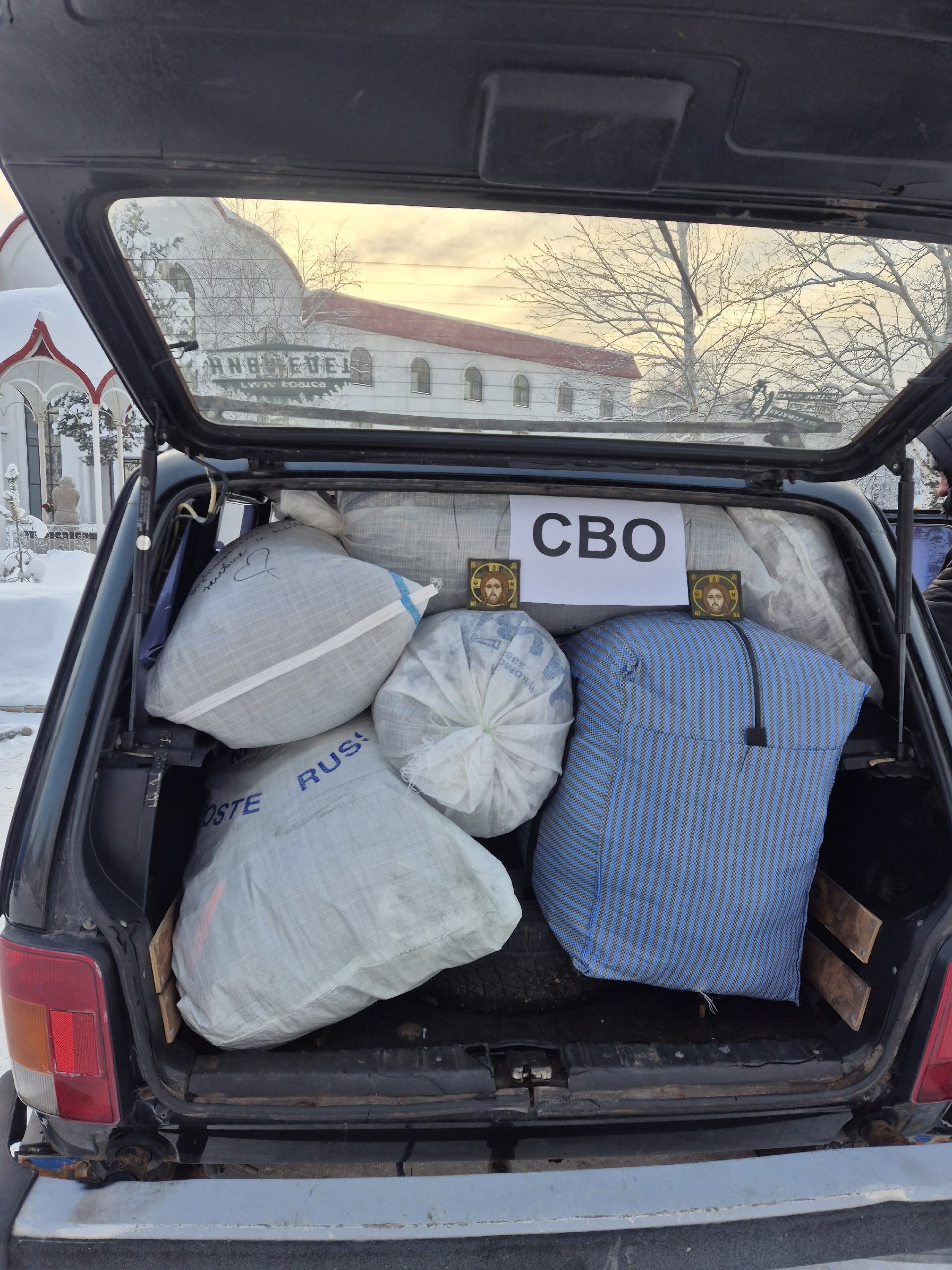 Перед отправкой груз традиционно осветили в храме Георгия Победоносца - церкви, названной в честь святого,  покровителя всех воинов.