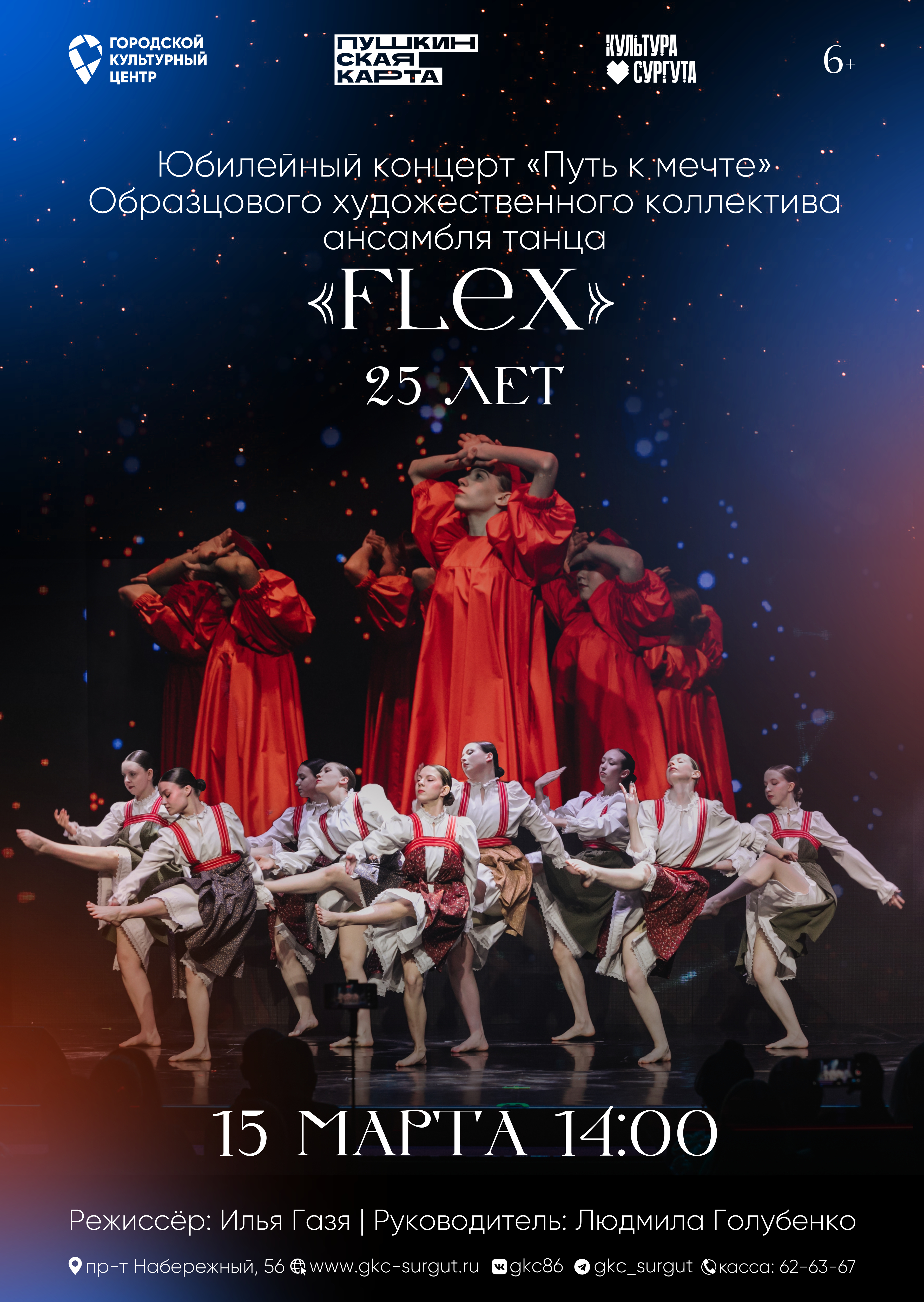 15 марта, 14:00 Юбилейный концерт «Путь к мечте» Образцового художественного коллектива ансамбля танца «Flex» (25 лет) в Городском культурном центре!