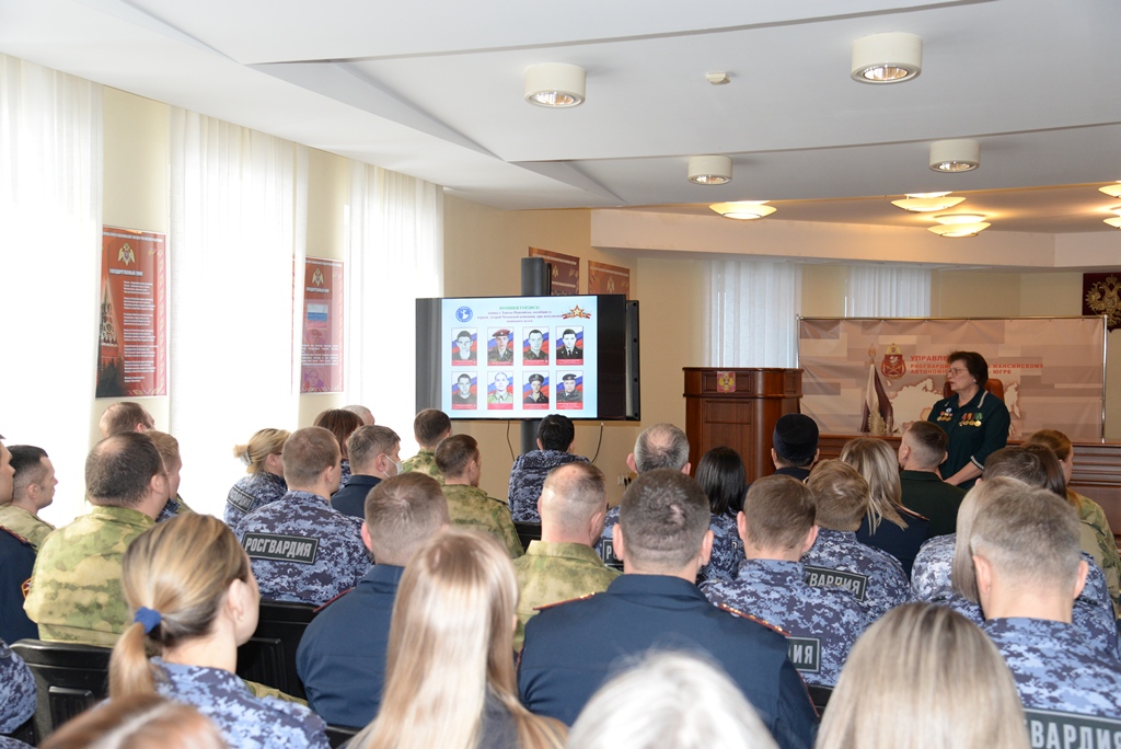 В ходе визита были подведены итоги проводимой работы по военно-патриотическому воспитанию подрастающего поколения, работе с семьями погибших защитников Отечества в различных военных конфликтах и специальной военной операции. Под патронажем территориального управления Росгвардии находится 30 таких семей, большинство награждены посмертно Орденом Мужества.