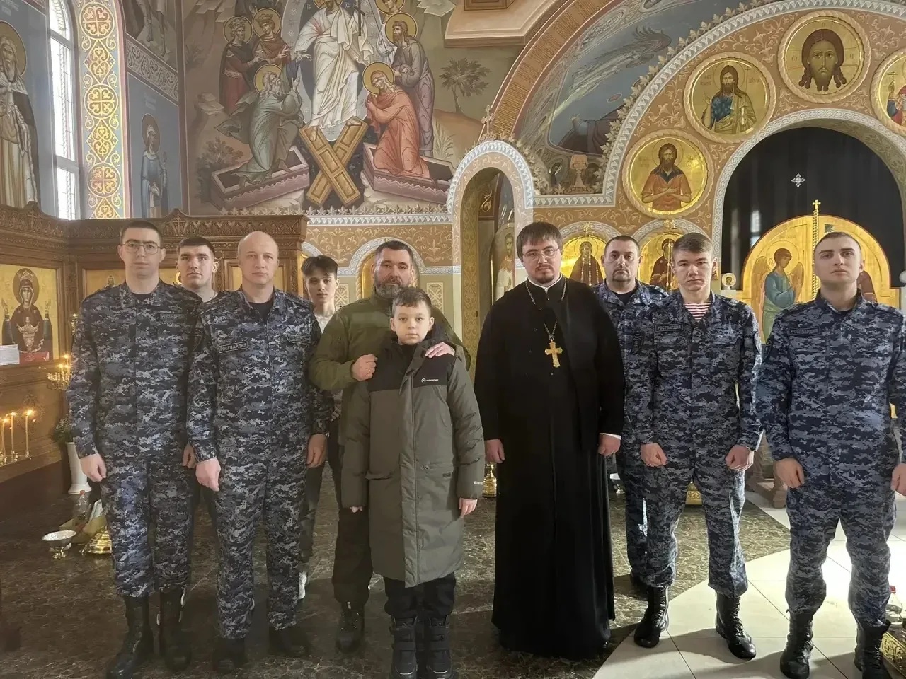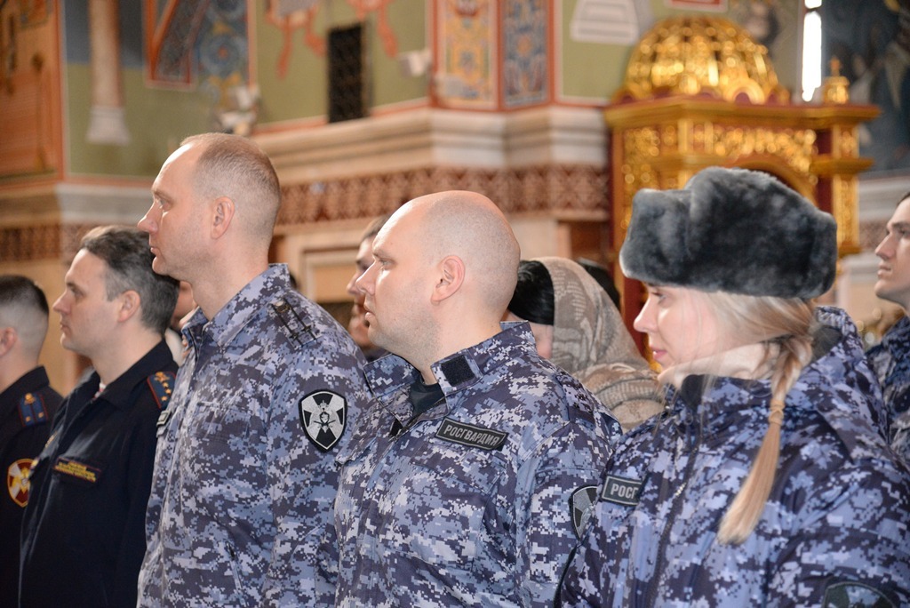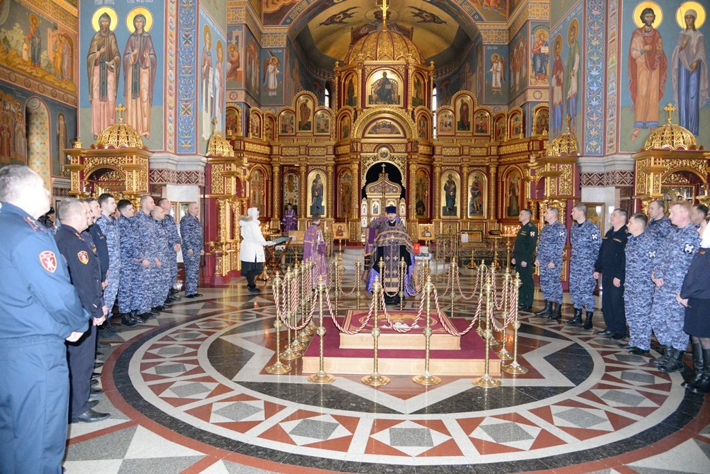 В преддверии празднования 10-летия со Дня образования Федеральной службы войск национальной гвардии Российской Федерации и 215-й годовщины войск правопорядка в Кафедральном соборе Воскресения Господня г. Ханты-Мансийска военнослужащие, сотрудники, ветераны Управления Росгардии по ХМАО – Югре приняли участие в благодарственном молебном пении, которое совершил председатель отдела по взаимодействию с Вооруженными Силами и правоохранительными учреждениями Ханты-Мансийской епархии иерей Евгений Кизин.