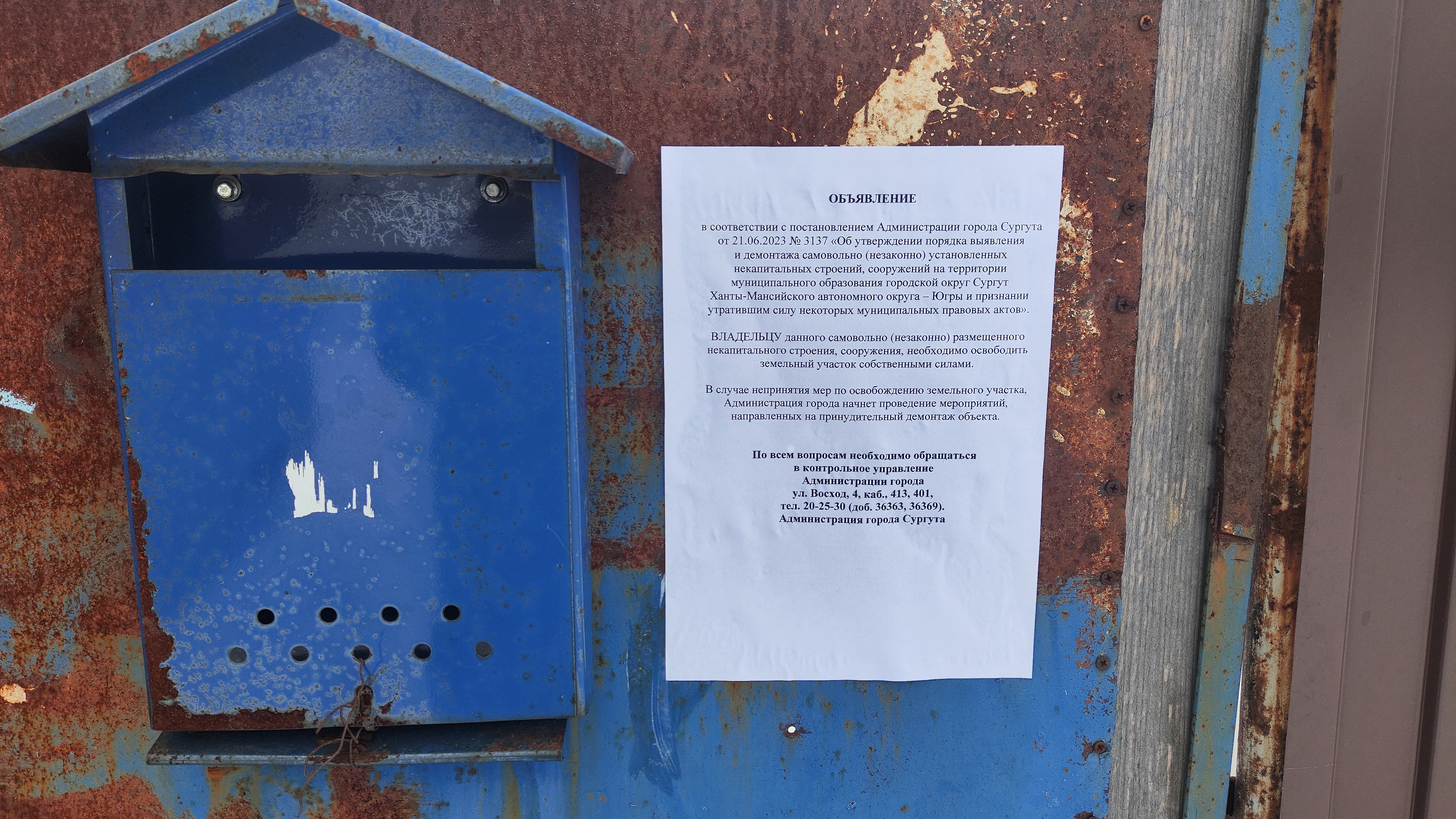 в соответствии с постановлением Администрации города Сургута от 21.06.2023 № 3137 «Об утверждении порядка выявления и демонтажа самовольно (незаконно) установленных некапитальных строений, сооружений на территории муниципального образования городской округ Сургут Ханты-Мансийского автономного округа – Югры и признании утратившим силу некоторых муниципальных правовых актов».