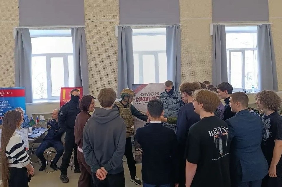 В ходе профориентационной работы молодым людям показали экипировку и оснащение, используемое экипажами Росгвардии и бойцами ОМОН при несении службы.