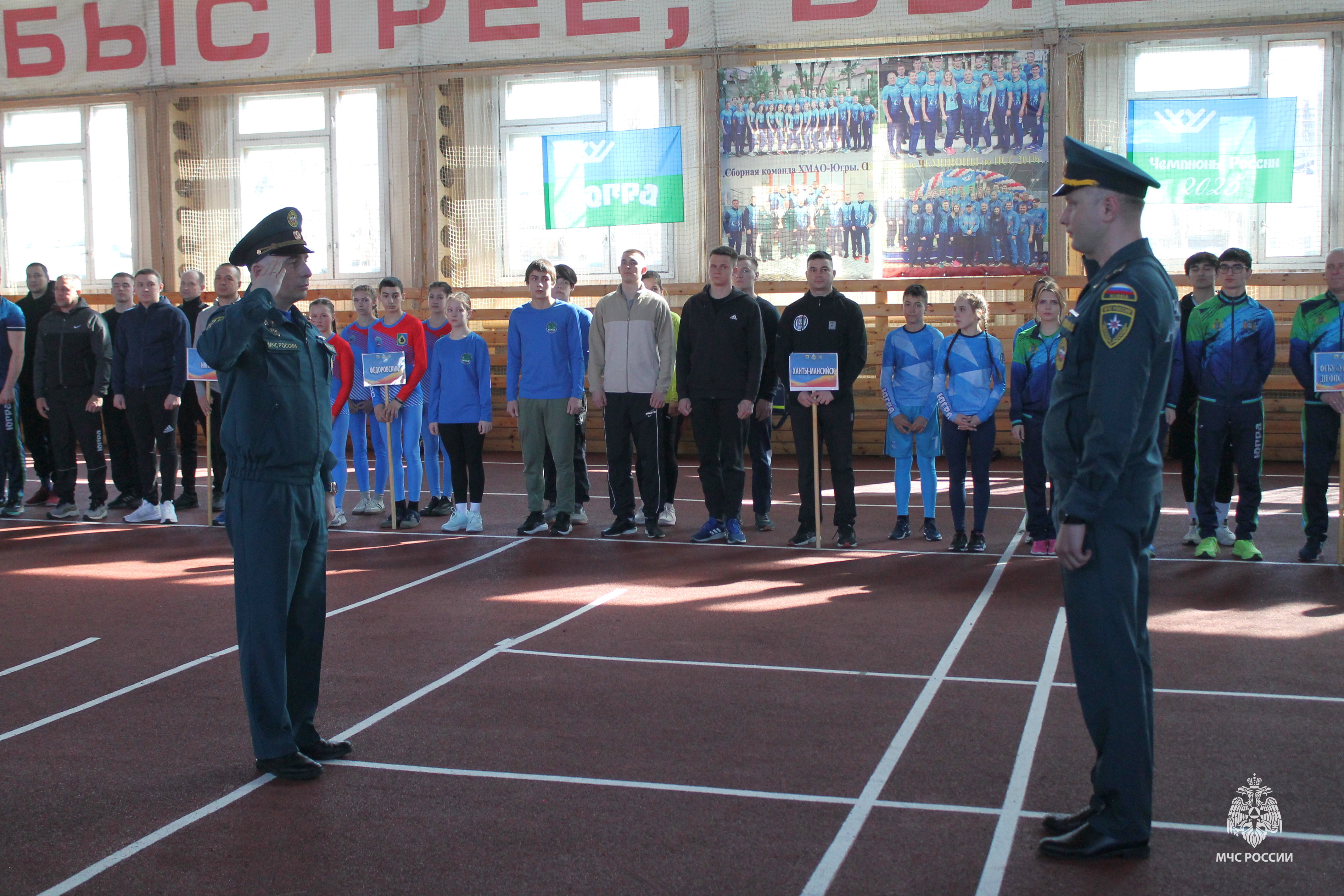 Перед началом состязаний с приветственным словом выступили заместитель начальника управления организации пожаротушения Главного управления Дмитрий Викторович Капустин и главный тренер сборной команды Главного управления МЧС России по ХМАО-Югре по пожарно-спасательному спорту Сергей Александрович Адушкин. Также к участникам обратился исполняющий обязанности начальника отдела культурно-массовой работы управления физической культуры и спорта Администрации города Сургута Павел Андреевич Чудинов, которые пожелали всем уверенности, стойкости духа и ярких побед.