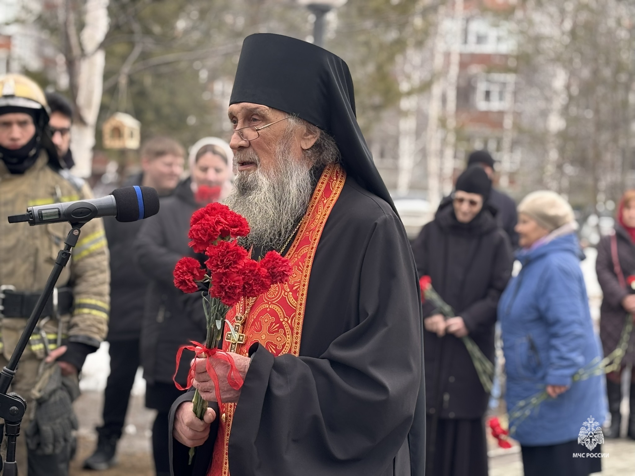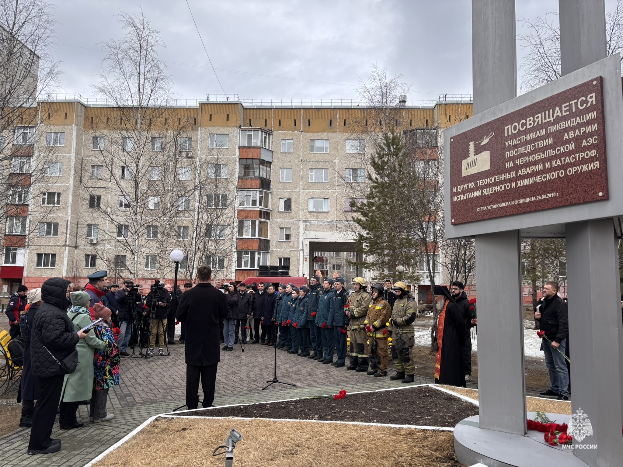 Центральным событием стала церемония в сквере, где установлена стела в честь ликвидаторов последствий аварии на Чернобыльской АЭС и других радиационных, а также техногенных катастроф. Пожарный расчёт подал звуковой сигнал, символизируя дань уважения и скорби по погибшим, а также во всех пожарно-спасательных частях гарнизона почтили память минутой молчания.