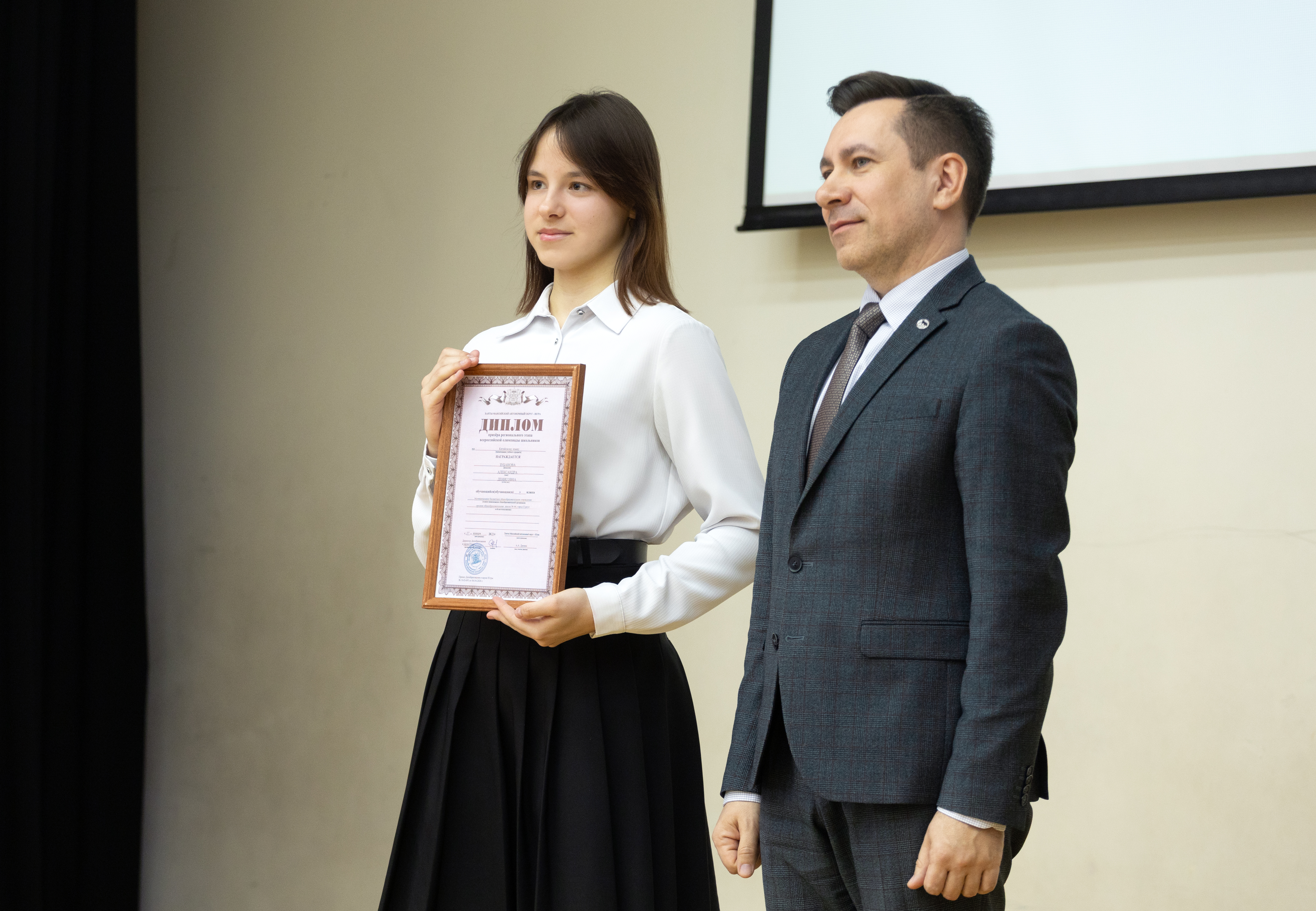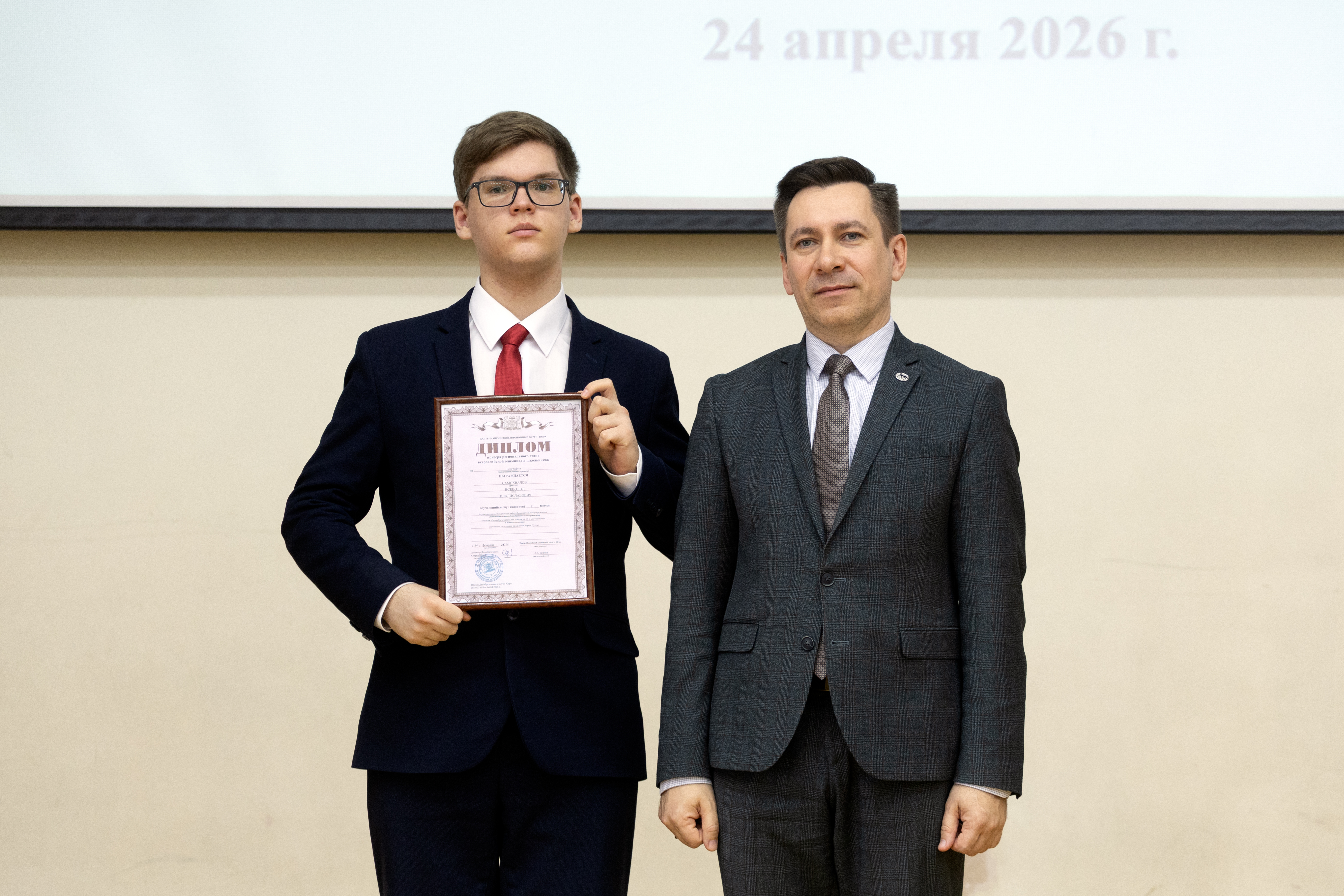 Вручил долгожданные дипломы победителям и призёрам заместитель Главы Сургута Владимир Фризен. В этом году лидером по числу наград стал ученик гимназии «Лаборатория Салахова» Даниил Моргунов. Он одержал победу по двум предметам – экономике и немецком языке, а также стал призером по трем дисциплинам: обществознанию, географии и праву.